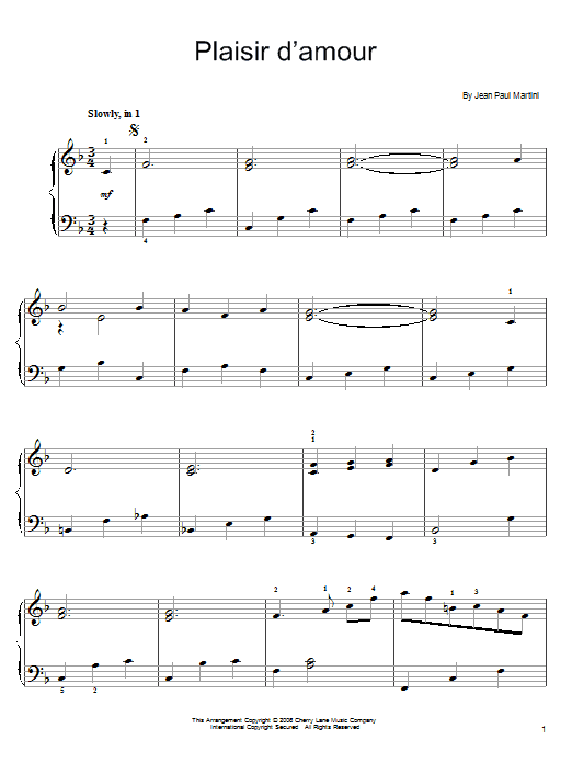Download or print Jean-Paul Martini Plaisir D'Amour sheet music, chords and digital score arranged for Piano & Vocal. This Classical score includes 5 page(s).