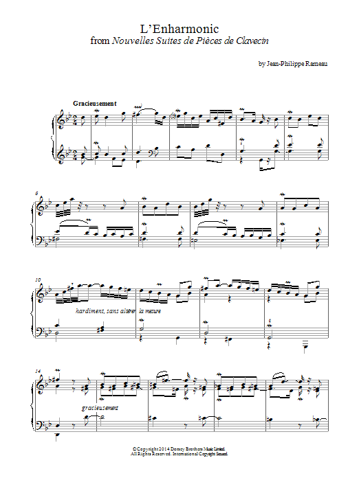 Download or print Jean-Philippe Rameau L'enharmonic From Nouvelles Suites De Pieces De Clavecin sheet music, chords and digital score arranged for Piano Solo. This Classical score includes 4 page(s).