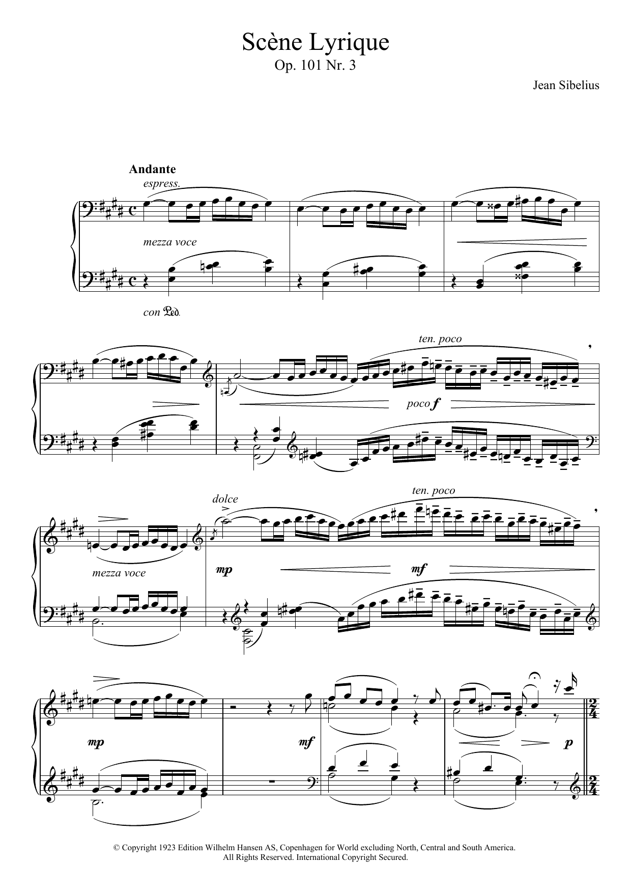 Download or print Jean Sibelius 5 Morceaux Romantiques, Op.101 - III. Scene Lyrique sheet music, chords and digital score arranged for Piano Solo. This Classical score includes 4 page(s).
