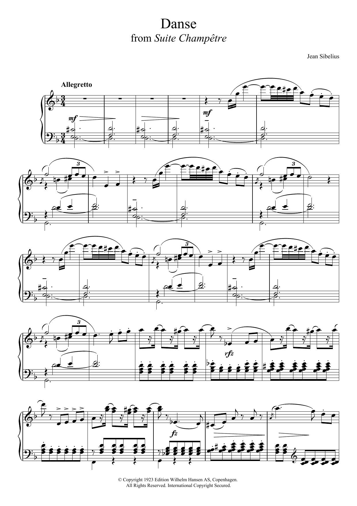 Download or print Jean Sibelius Suite Champetre, Op.98B - III. Danse sheet music, chords and digital score arranged for Piano Solo. This Classical score includes 3 page(s).