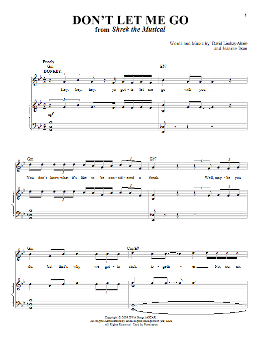 Download or print Jeanine Tesori Don't Let Me Go sheet music, chords and digital score arranged for Piano & Vocal. This Children score includes 8 page(s).