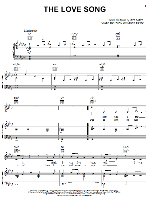 Download or print Jeff Bates The Love Song sheet music, chords and digital score arranged for Piano, Vocal & Guitar Chords (Right-Hand Melody). This Country score includes 7 page(s).