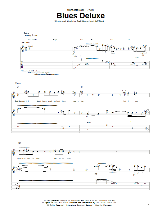 Download or print Jeff Beck Blues Deluxe sheet music, chords and digital score arranged for Guitar Tab. This Pop score includes 10 page(s).