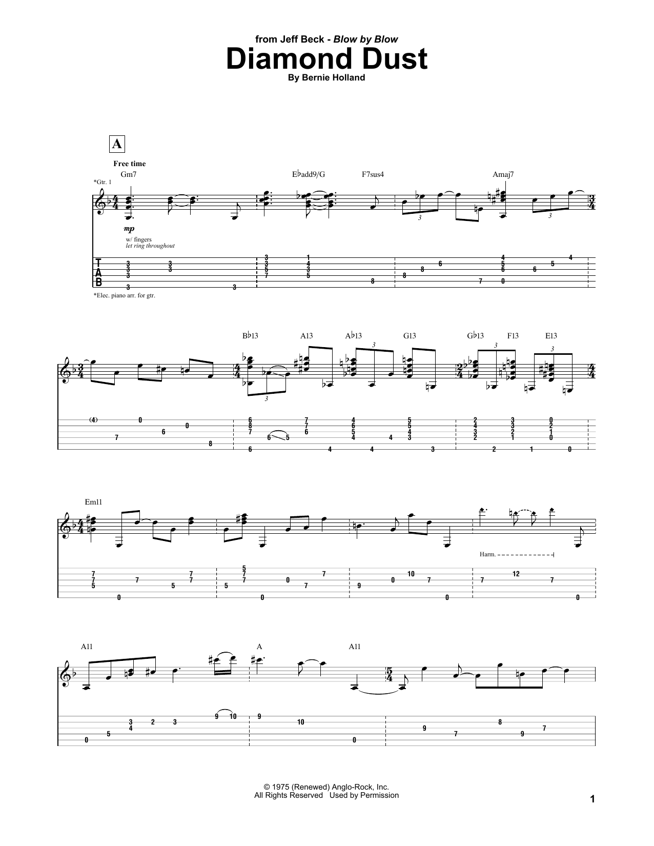 Download or print Jeff Beck Diamond Dust sheet music, chords and digital score arranged for Guitar Tab. This Rock score includes 9 page(s).