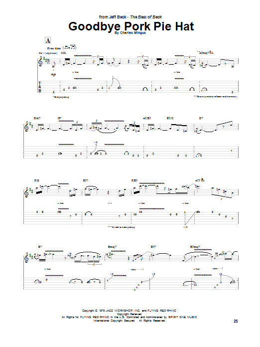 Download or print Jeff Beck Goodbye Pork Pie Hat sheet music, chords and digital score arranged for Guitar Tab (Single Guitar). This Jazz score includes 6 page(s).