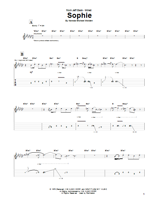 Download or print Jeff Beck Sophie sheet music, chords and digital score arranged for Guitar Tab. This Pop score includes 15 page(s).
