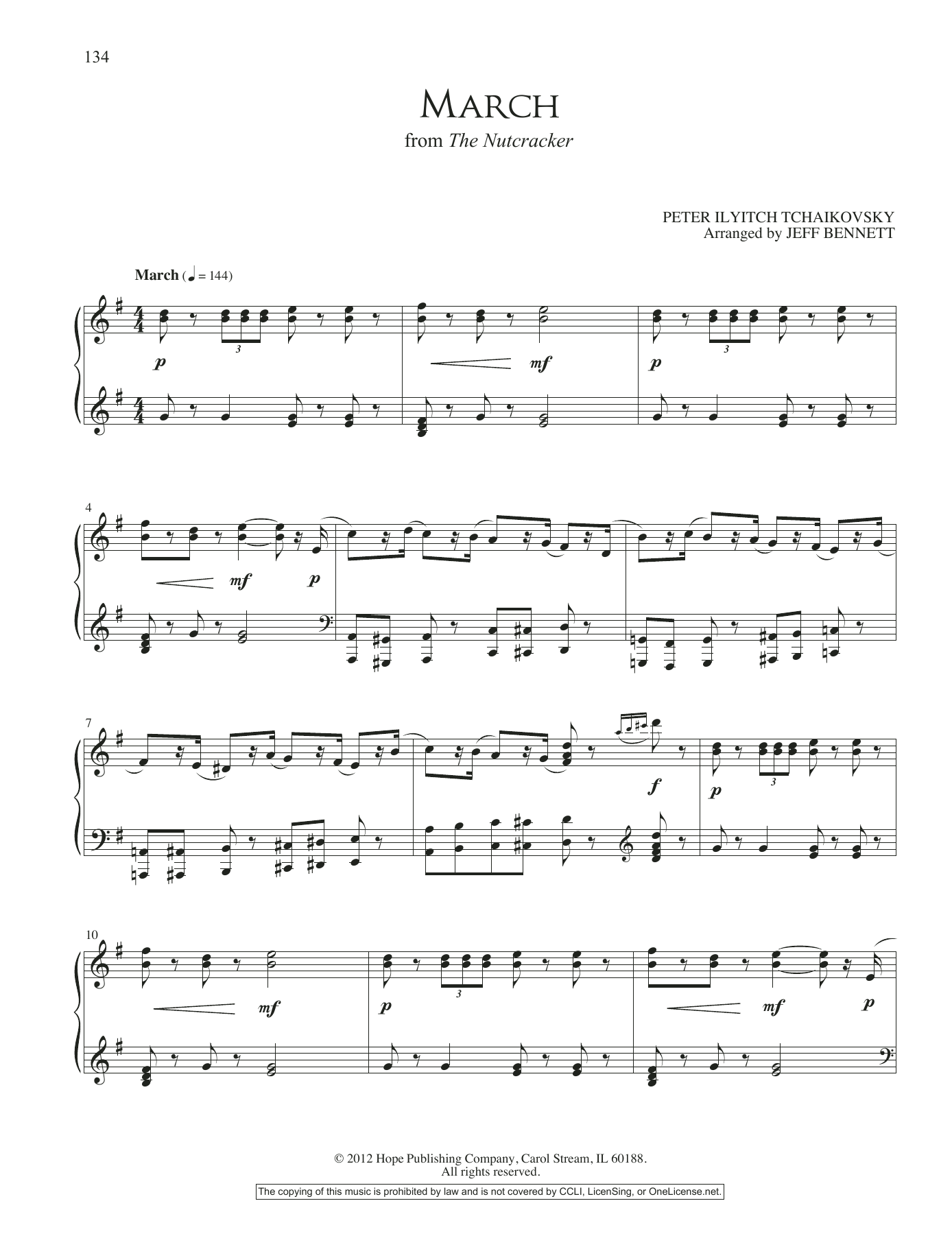 Download or print Jeff Bennett March (from The Nutcracker) sheet music, chords and digital score arranged for Piano Solo. This Hymn score includes 3 page(s).
