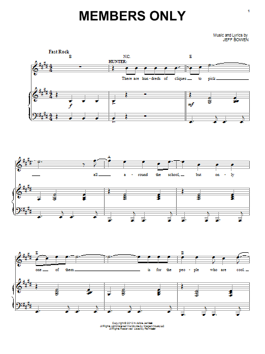 Download or print Jeff Bowen Members Only sheet music, chords and digital score arranged for Piano & Vocal. This Musical/Show score includes 15 page(s).