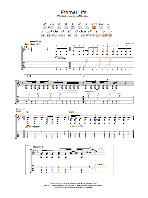 Download or print Jeff Buckley Eternal Life sheet music, chords and digital score arranged for Piano, Vocal & Guitar Chords. This Pop score includes 5 page(s).