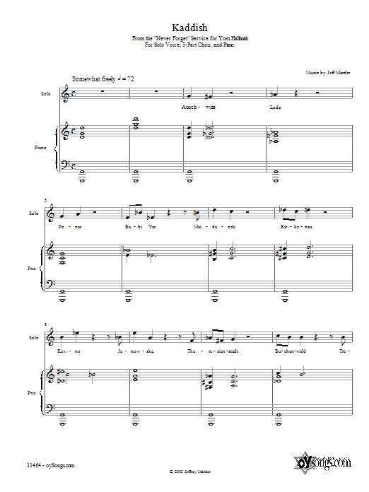 Download or print Jeff Marder Kaddish sheet music, chords and digital score arranged for Piano, Vocal & Guitar Chords (Right-Hand Melody). This Traditional score includes 9 page(s).