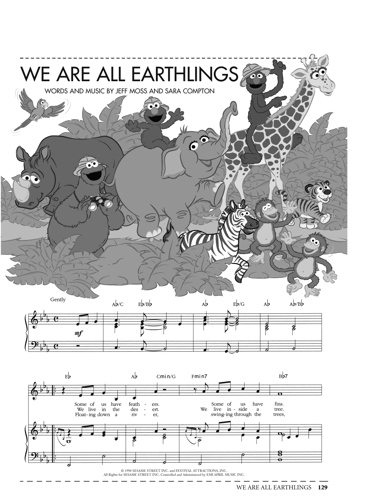 Download or print Jeff Moss We Are All Earthlings (from Sesame Street) sheet music, chords and digital score arranged for Piano, Vocal & Guitar Chords (Right-Hand Melody). This Children score includes 3 page(s).