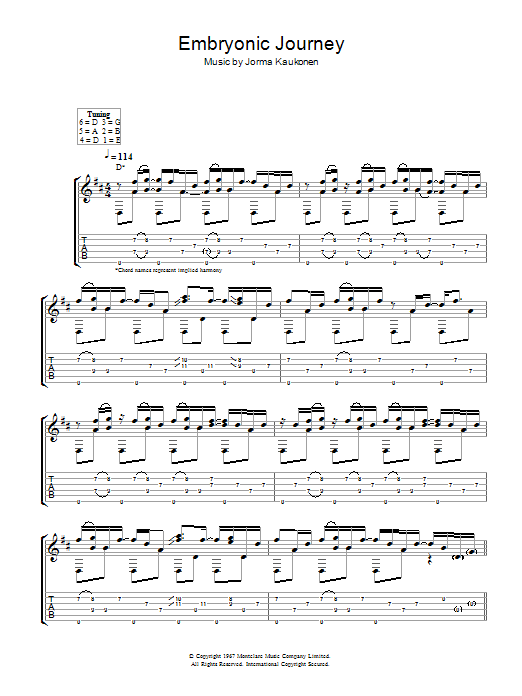 Download or print Jefferson Airplane Embryonic Journey sheet music, chords and digital score arranged for Guitar Tab. This Rock score includes 5 page(s).