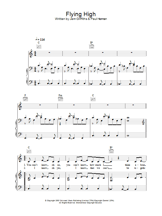 Download or print Jem Flying High sheet music, chords and digital score arranged for Piano, Vocal & Guitar Chords. This Pop score includes 5 page(s).