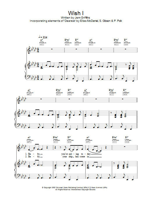 Download or print Jem Wish I sheet music, chords and digital score arranged for Piano, Vocal & Guitar Chords. This Pop score includes 4 page(s).