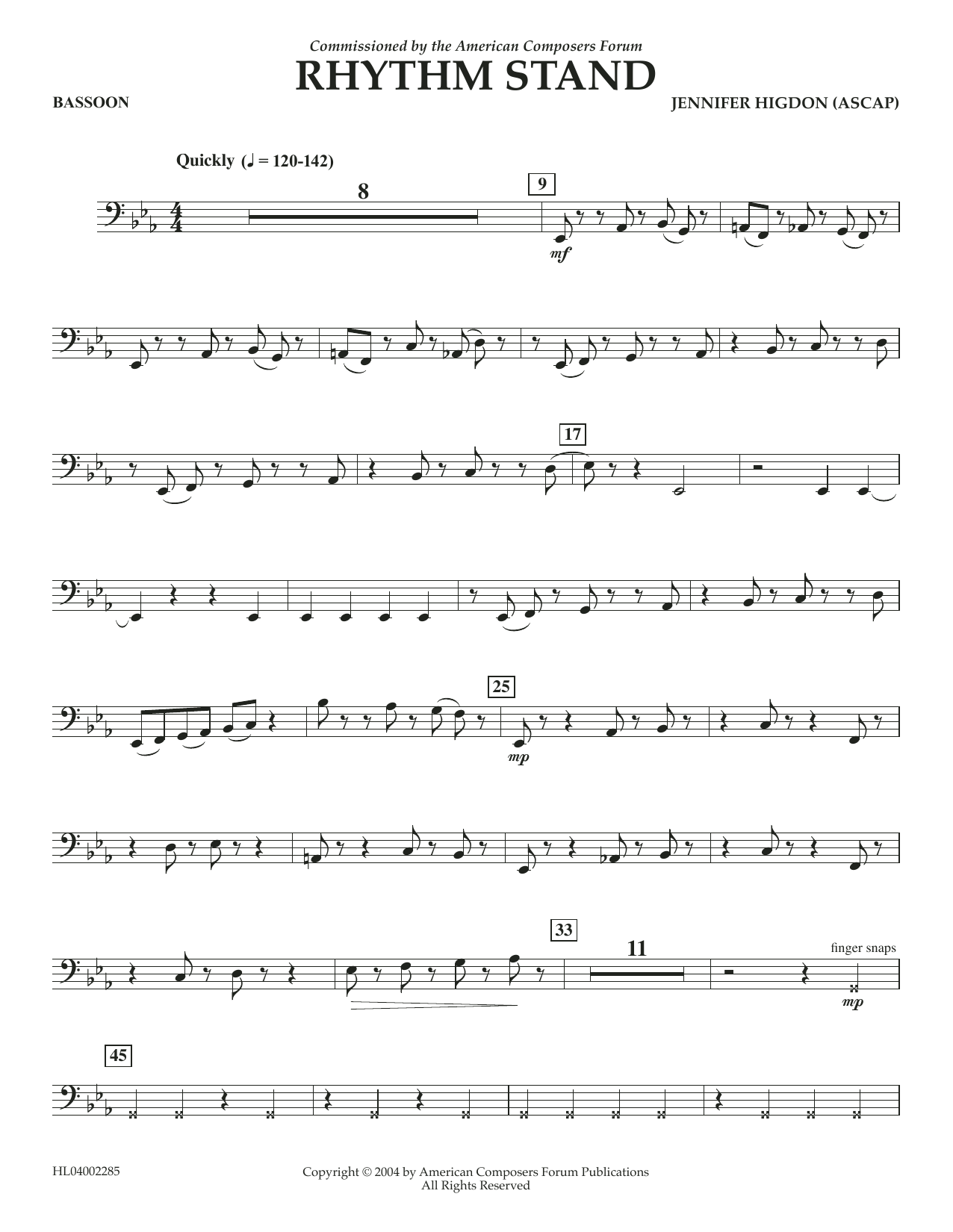 Download or print Jennifer Higdon Rhythm Stand - Bassoon sheet music, chords and digital score arranged for Concert Band. This Concert score includes 2 page(s).