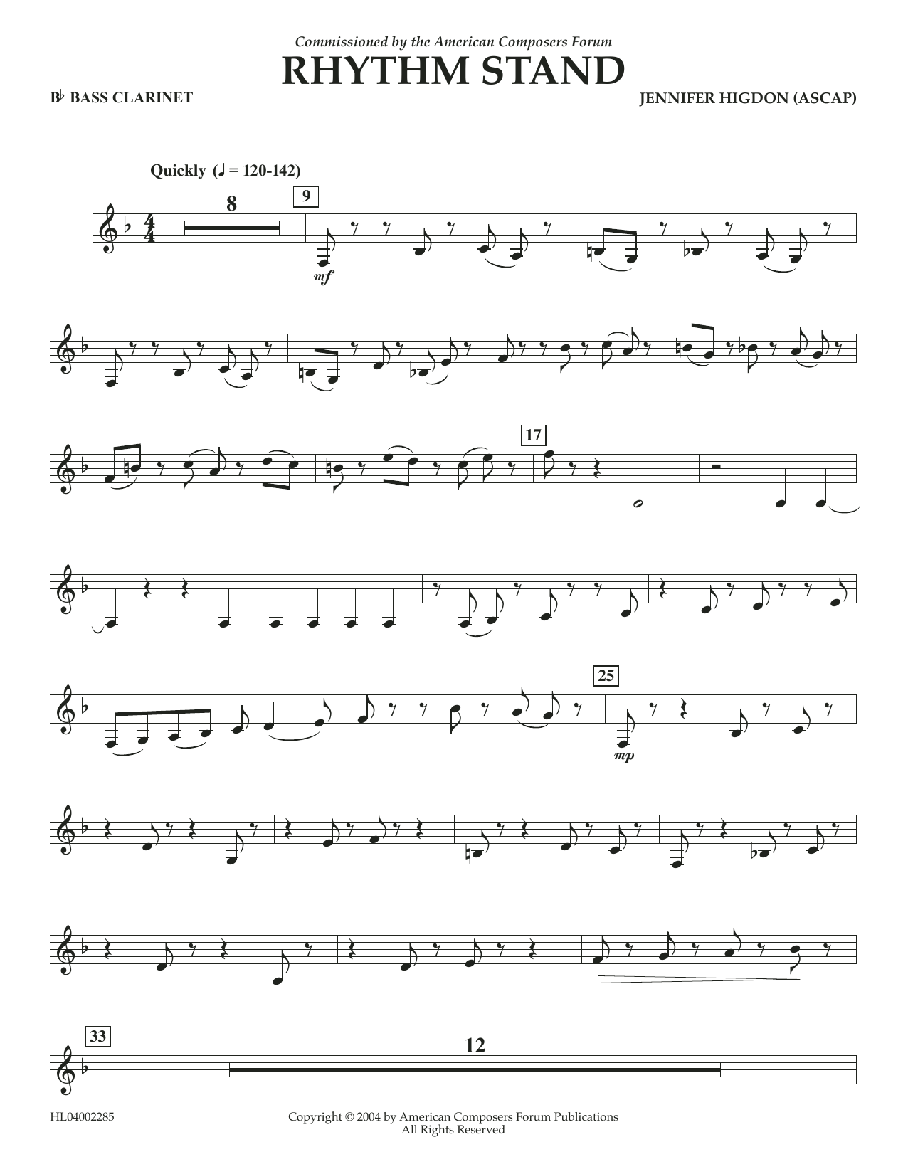 Download or print Jennifer Higdon Rhythm Stand - Bb Bass Clarinet sheet music, chords and digital score arranged for Concert Band. This Concert score includes 2 page(s).