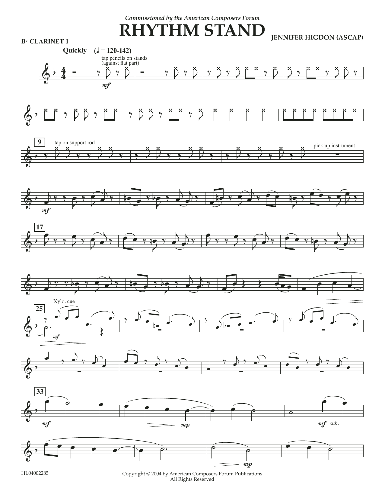 Download or print Jennifer Higdon Rhythm Stand - Bb Clarinet 1 sheet music, chords and digital score arranged for Concert Band. This Concert score includes 2 page(s).