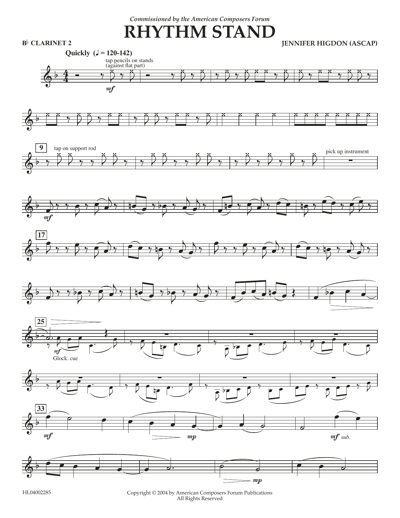 Download or print Jennifer Higdon Rhythm Stand - Bb Clarinet 2 sheet music, chords and digital score arranged for Concert Band. This Concert score includes 2 page(s).