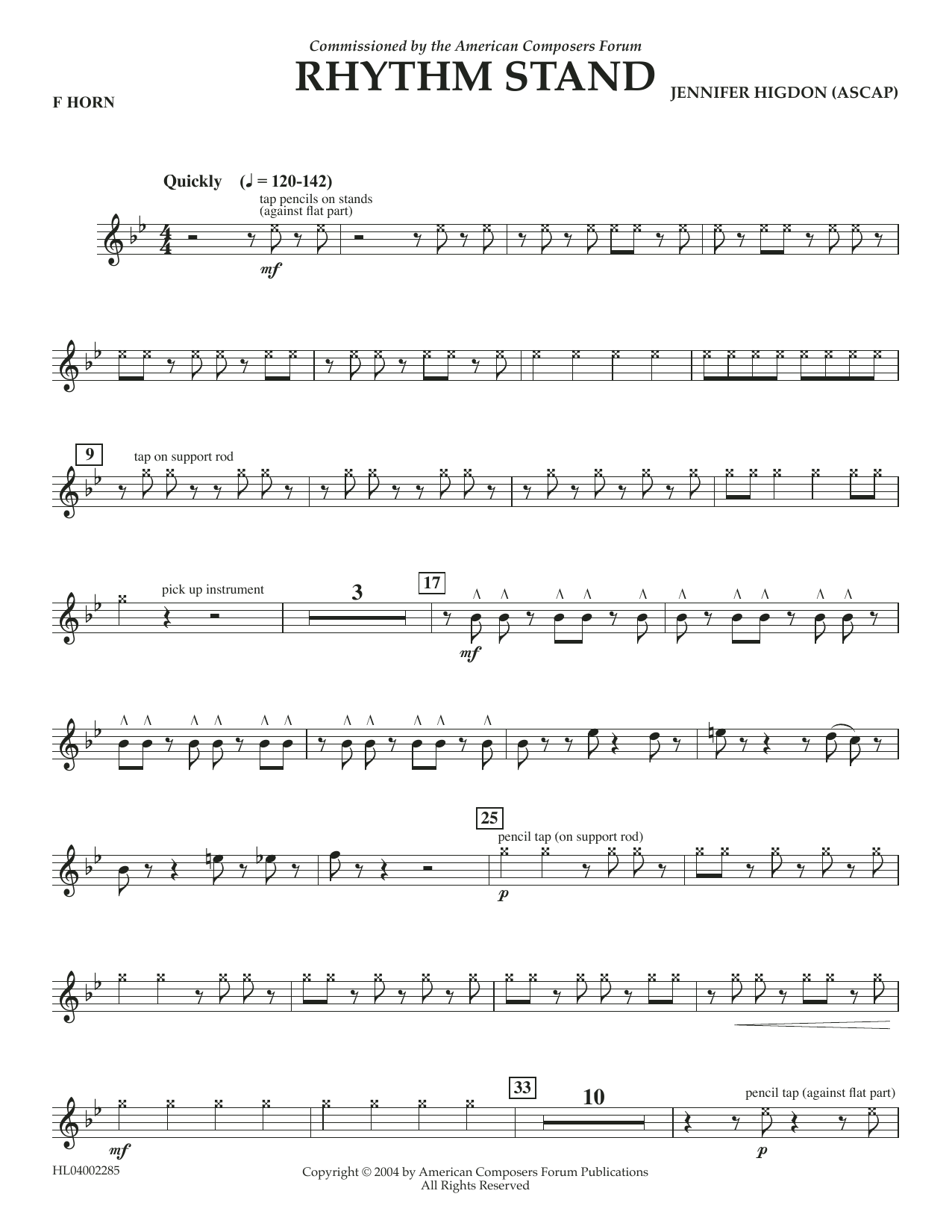 Download or print Jennifer Higdon Rhythm Stand - F Horn sheet music, chords and digital score arranged for Concert Band. This Concert score includes 2 page(s).
