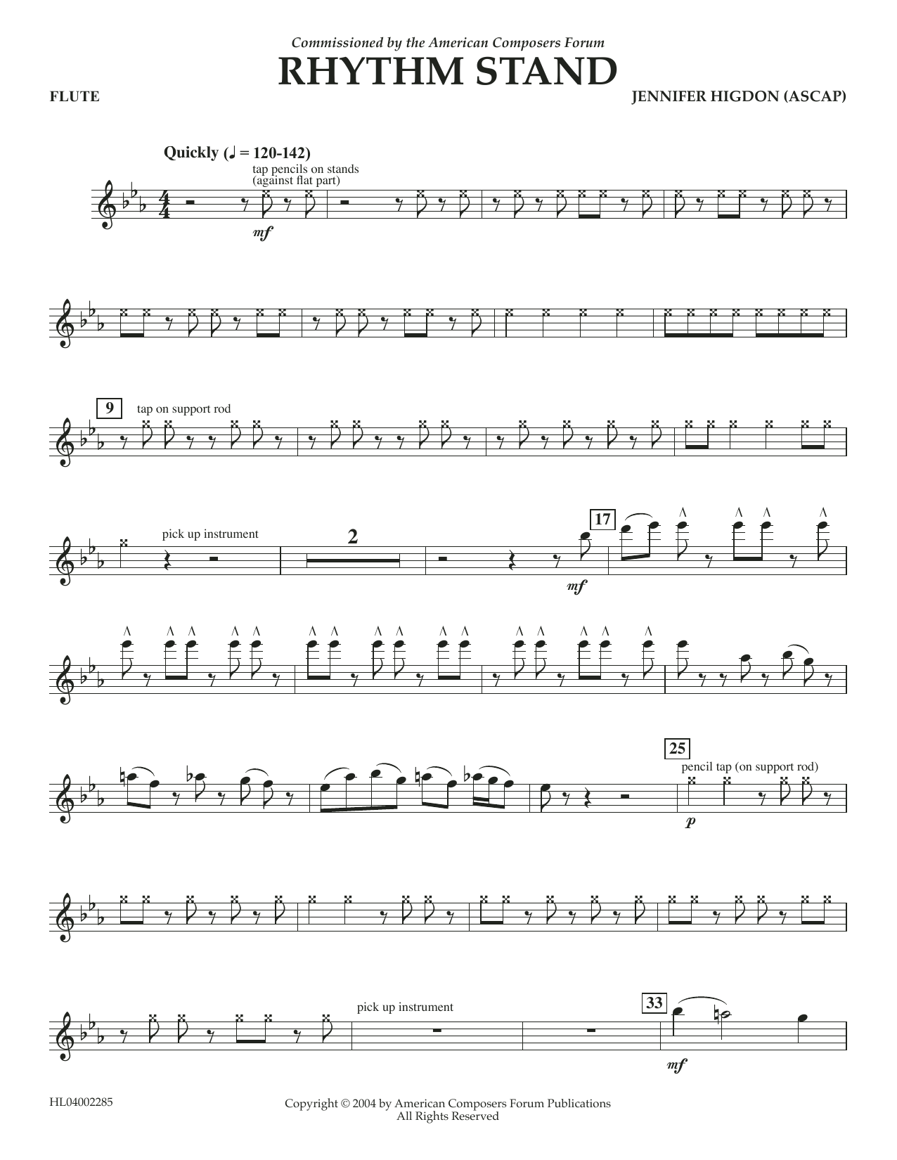 Download or print Jennifer Higdon Rhythm Stand - Flute sheet music, chords and digital score arranged for Concert Band. This Concert score includes 2 page(s).