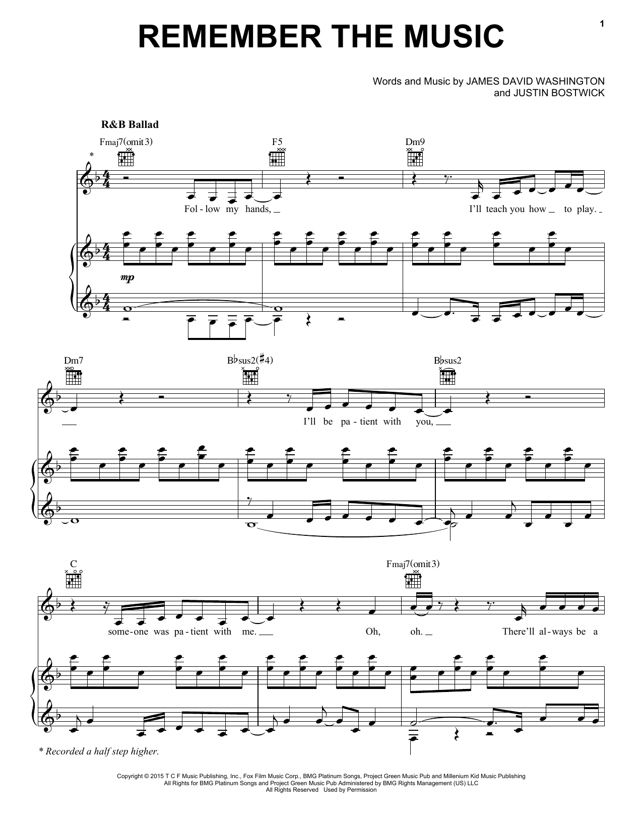Download or print Jennifer Hudson Remember The Music sheet music, chords and digital score arranged for Piano, Vocal & Guitar Chords (Right-Hand Melody). This Pop score includes 7 page(s).