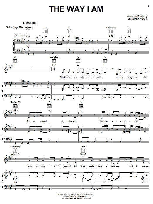Download or print Jennifer Knapp The Way I Am sheet music, chords and digital score arranged for Piano, Vocal & Guitar Chords (Right-Hand Melody). This Christian score includes 7 page(s).