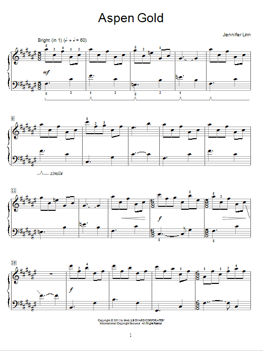 Download or print Jennifer Linn Aspen Gold sheet music, chords and digital score arranged for Piano Solo. This Instructional score includes 2 page(s).