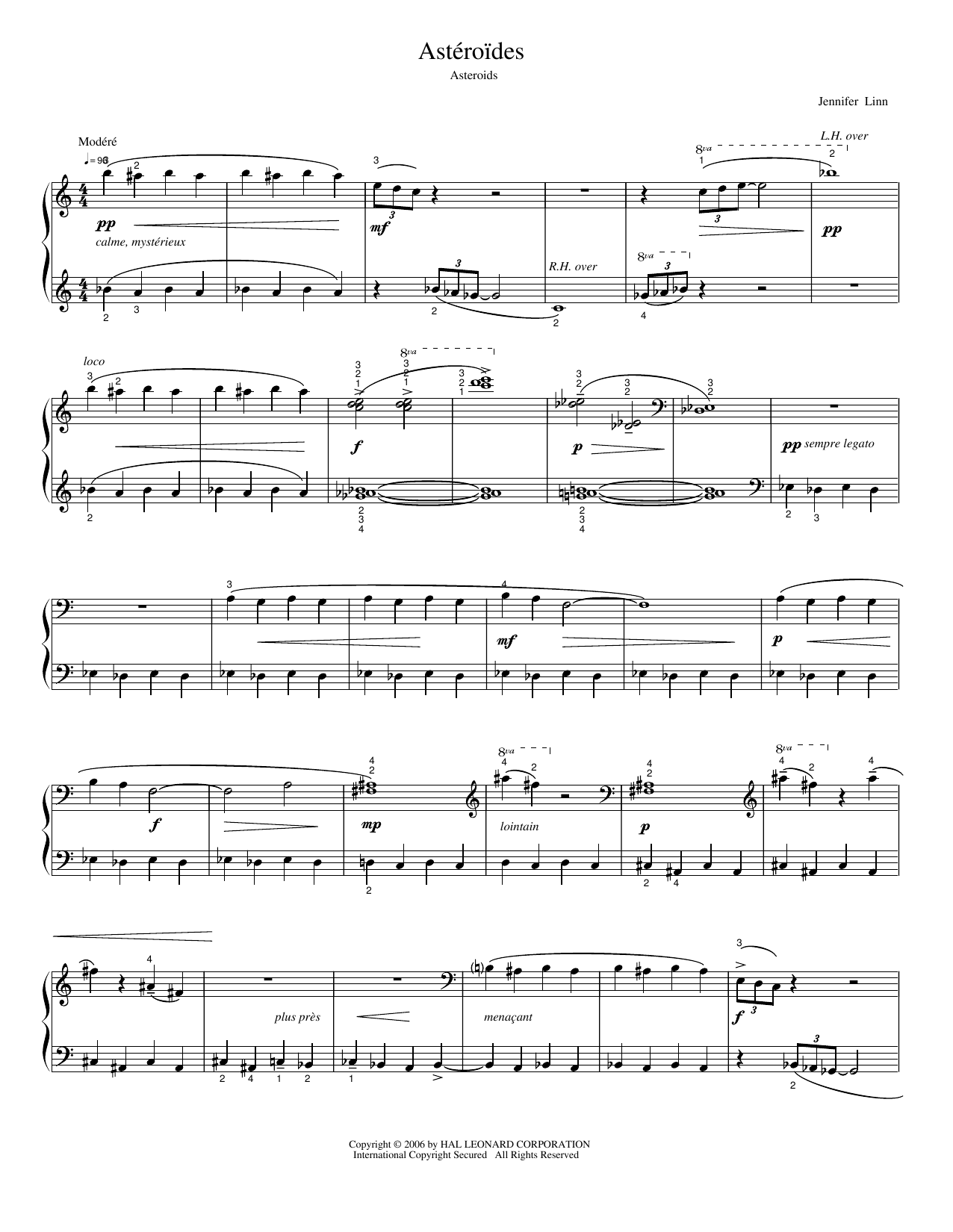 Download or print Jennifer Linn Asteroids sheet music, chords and digital score arranged for Piano Solo. This Instructional score includes 2 page(s).