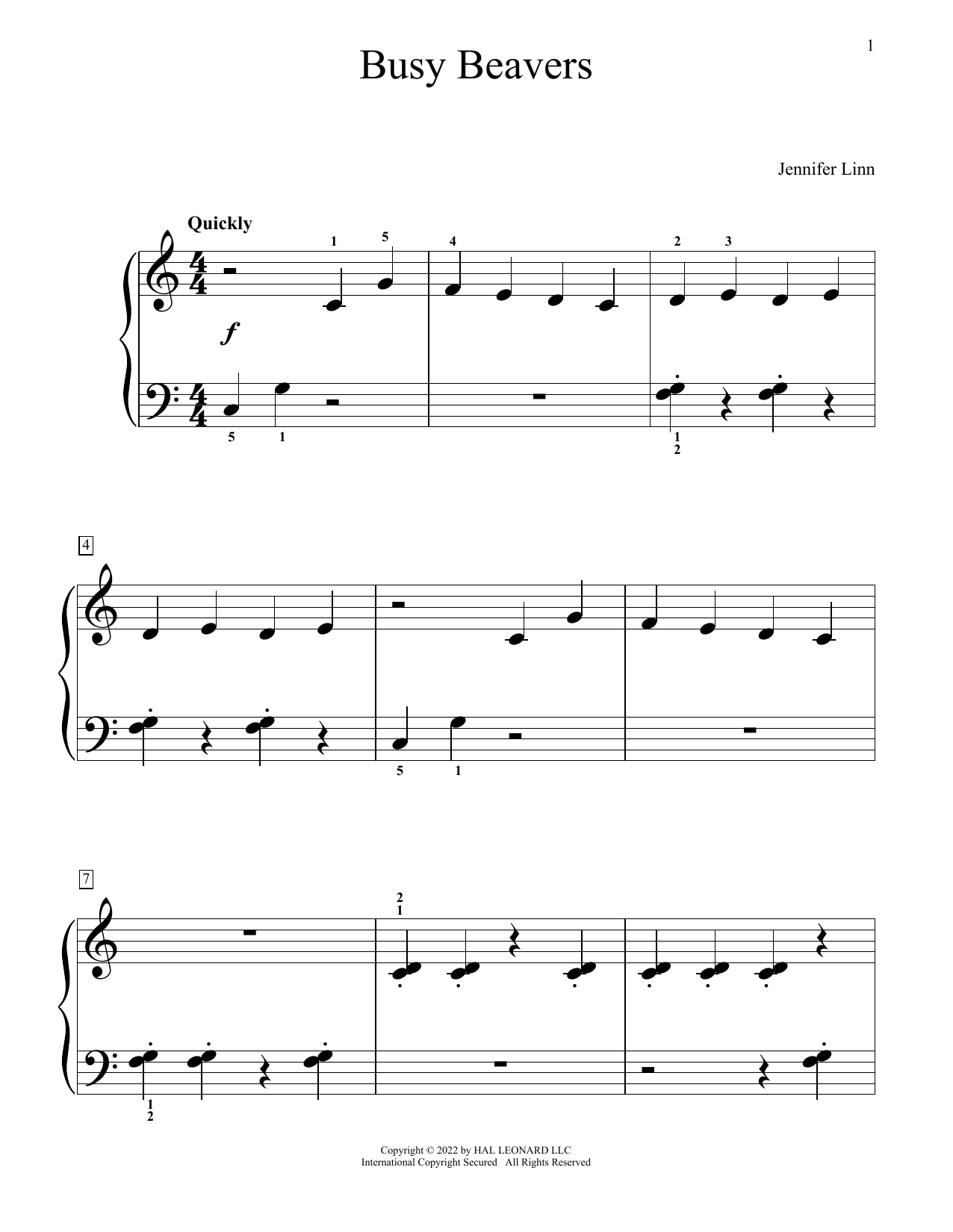 Download or print Jennifer Linn Busy Beavers sheet music, chords and digital score arranged for Educational Piano. This Instructional score includes 2 page(s).