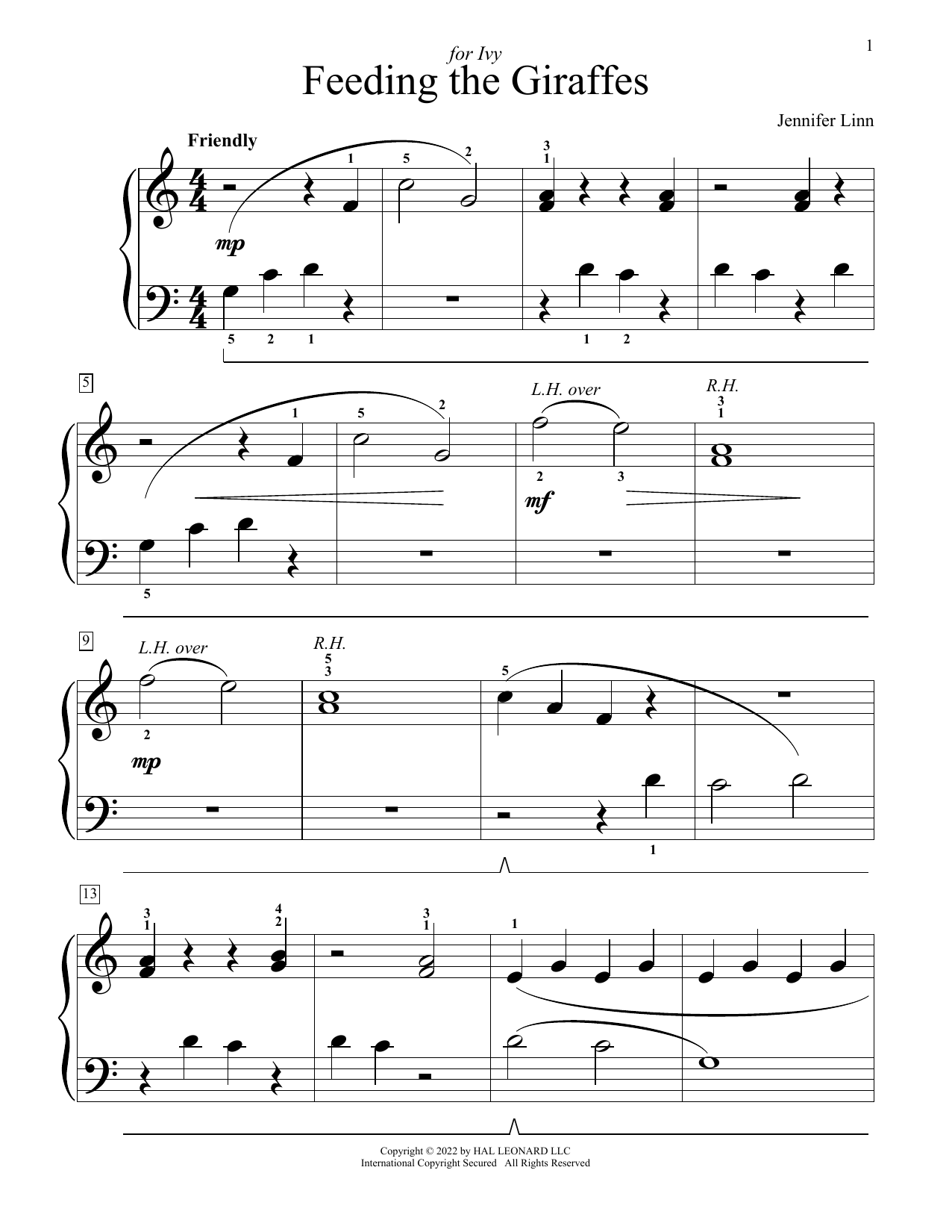 Download or print Jennifer Linn Feeding The Giraffes sheet music, chords and digital score arranged for Educational Piano. This Instructional score includes 2 page(s).