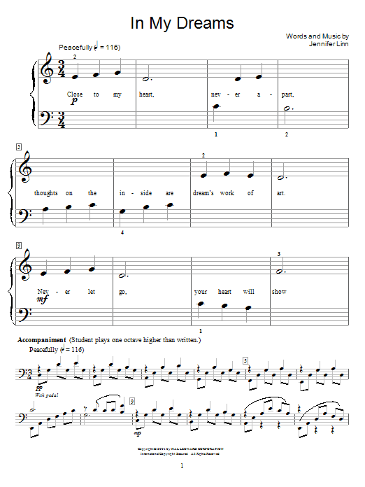 Download or print Jennifer Linn In My Dreams sheet music, chords and digital score arranged for Educational Piano. This Children score includes 3 page(s).