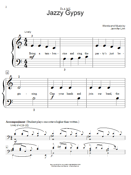Download or print Jennifer Linn Jazzy Gypsy sheet music, chords and digital score arranged for Piano Duet. This Children score includes 2 page(s).