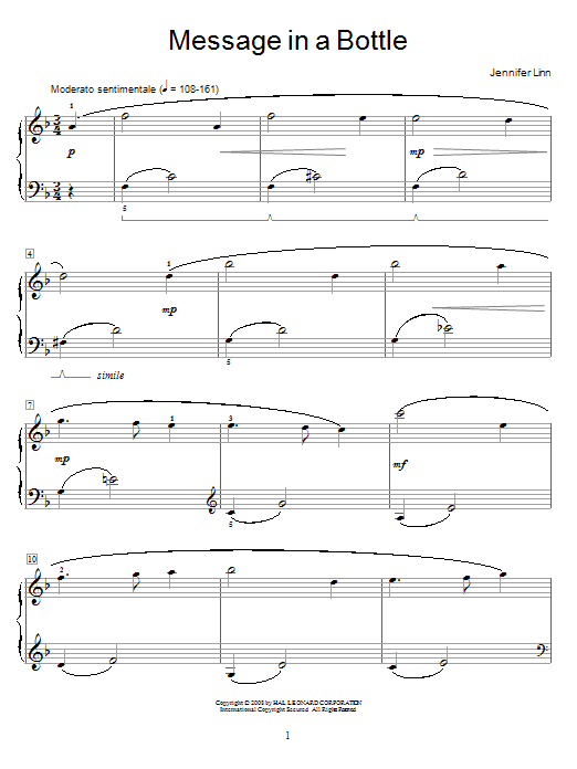 Download or print Jennifer Linn Message In A Bottle sheet music, chords and digital score arranged for Educational Piano. This Children score includes 4 page(s).