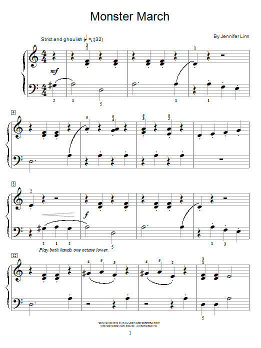 Download or print Jennifer Linn Monster March sheet music, chords and digital score arranged for Educational Piano. This Children score includes 3 page(s).