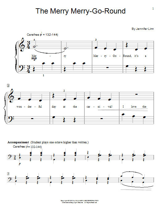 Download or print Jennifer Linn The Merry Merry-Go-Round sheet music, chords and digital score arranged for Educational Piano. This Children score includes 3 page(s).