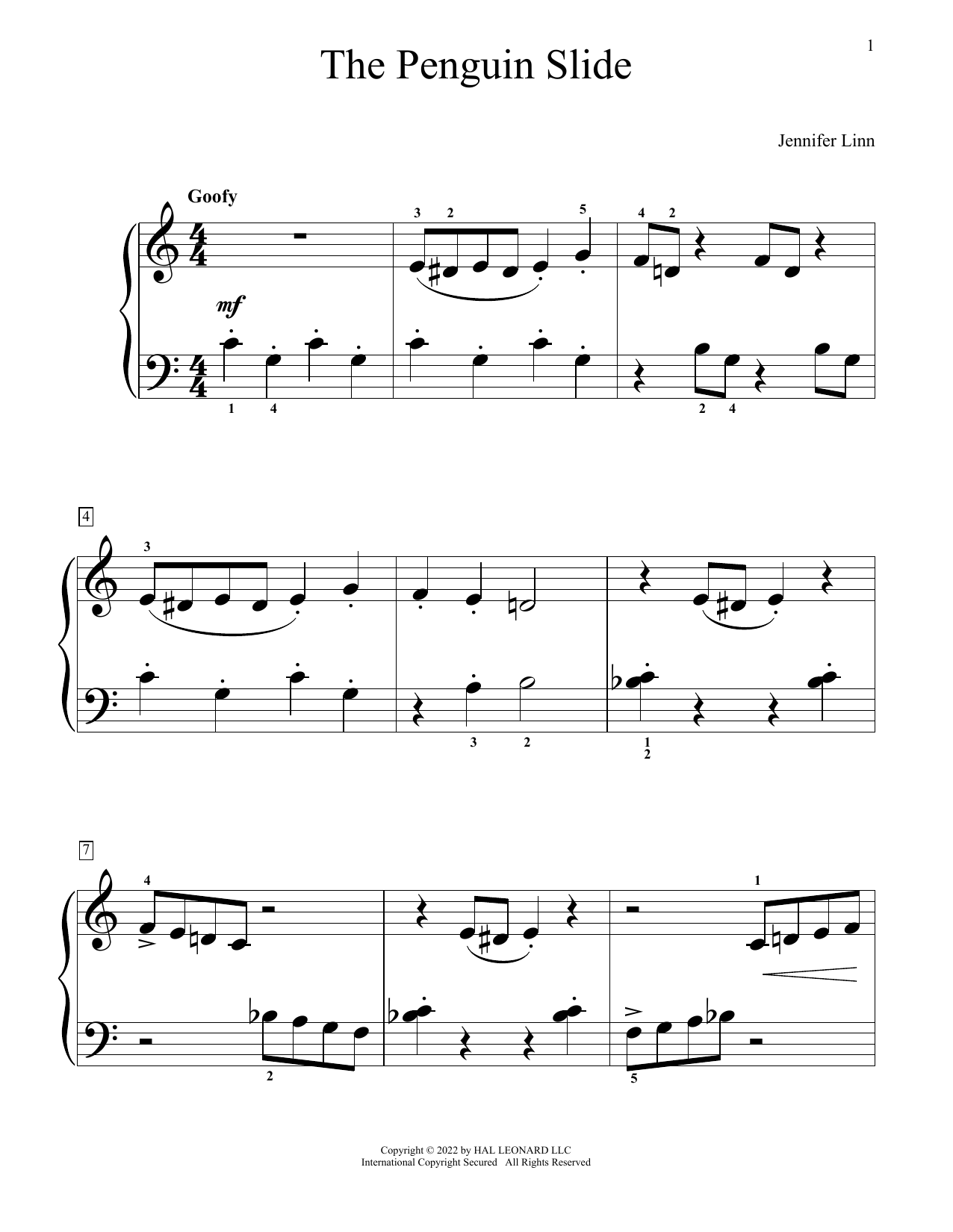 Download or print Jennifer Linn The Penguin Slide sheet music, chords and digital score arranged for Educational Piano. This Instructional score includes 2 page(s).