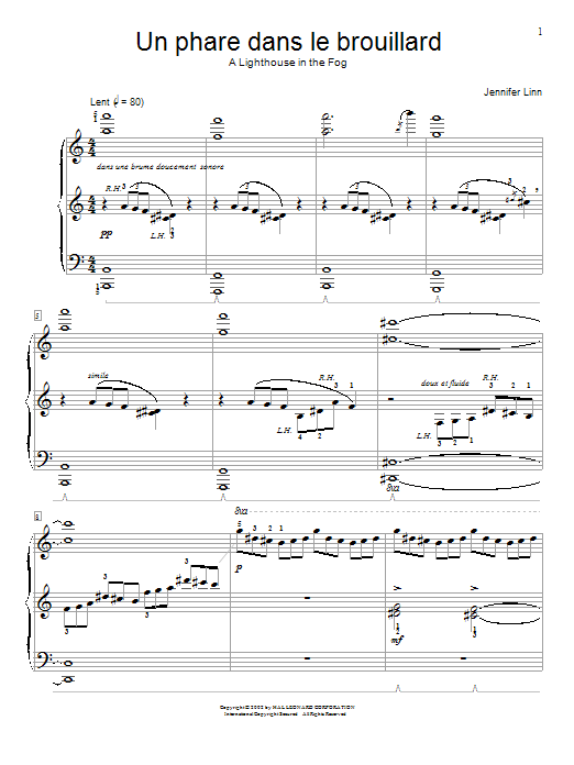 Download or print Jennifer Linn Un phare dans le brouillard (A Lighthouse In The Fog) sheet music, chords and digital score arranged for Educational Piano. This Pop score includes 4 page(s).