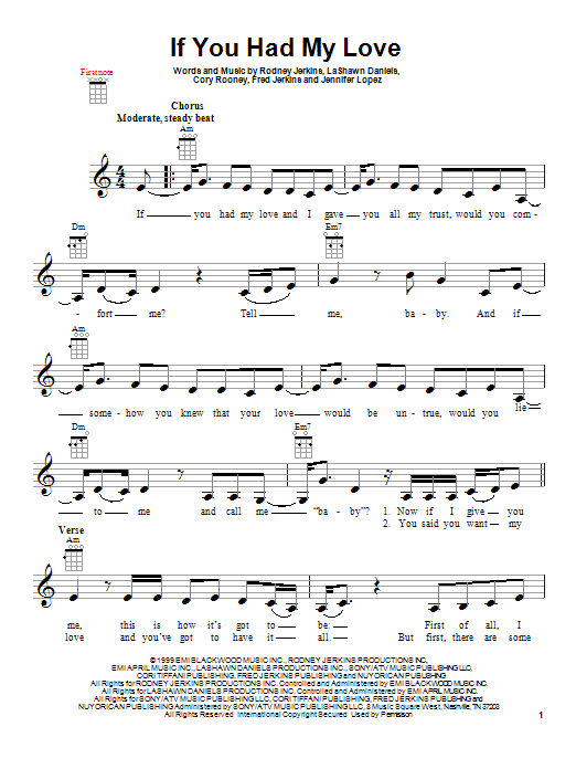 Download or print Jennifer Lopez If You Had My Love sheet music, chords and digital score arranged for Piano, Vocal & Guitar Chords (Right-Hand Melody). This Pop score includes 7 page(s).