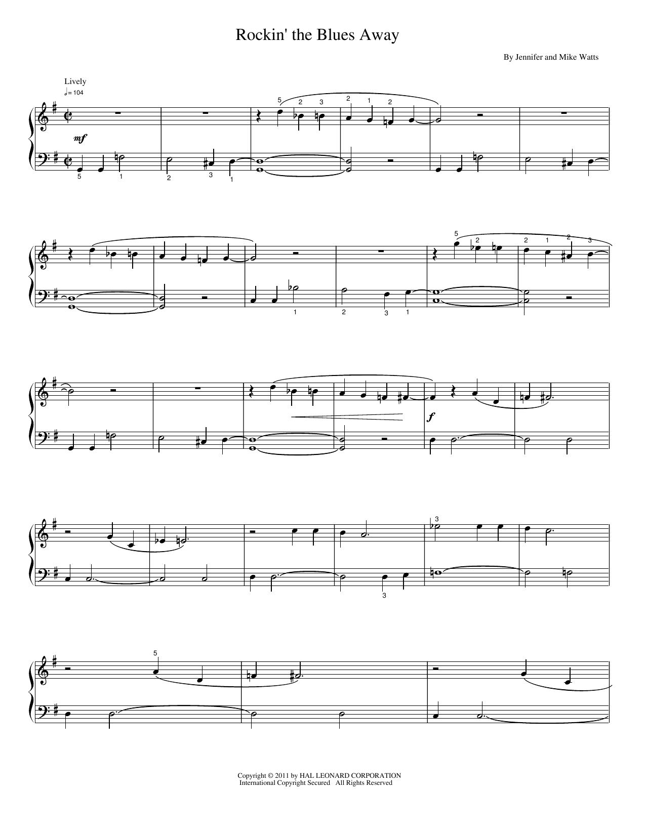 Download or print Jennifer & Mike Watts Rockin' The Blues Away sheet music, chords and digital score arranged for Piano Solo. This Instructional score includes 2 page(s).