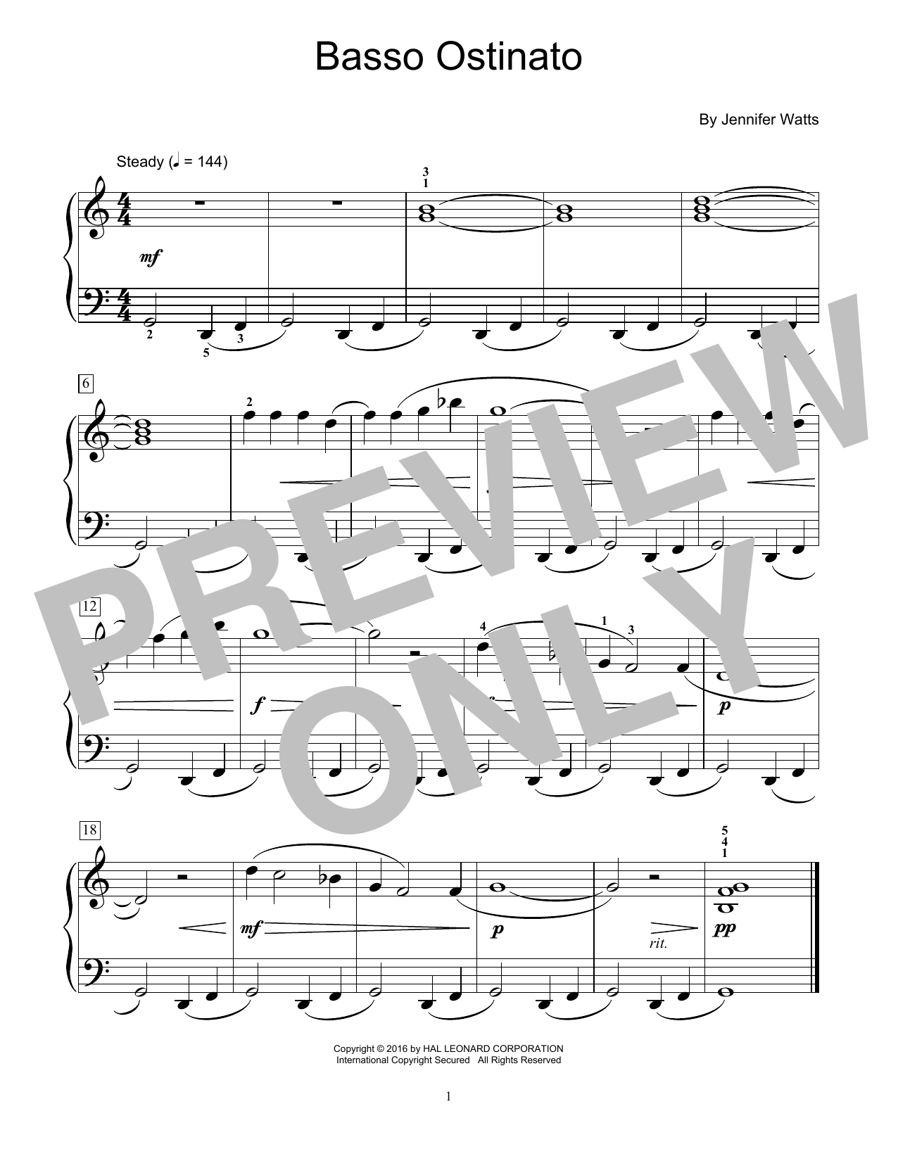 Download or print Jennifer Watts Basso Ostinato sheet music, chords and digital score arranged for Educational Piano. This Instructional score includes 1 page(s).