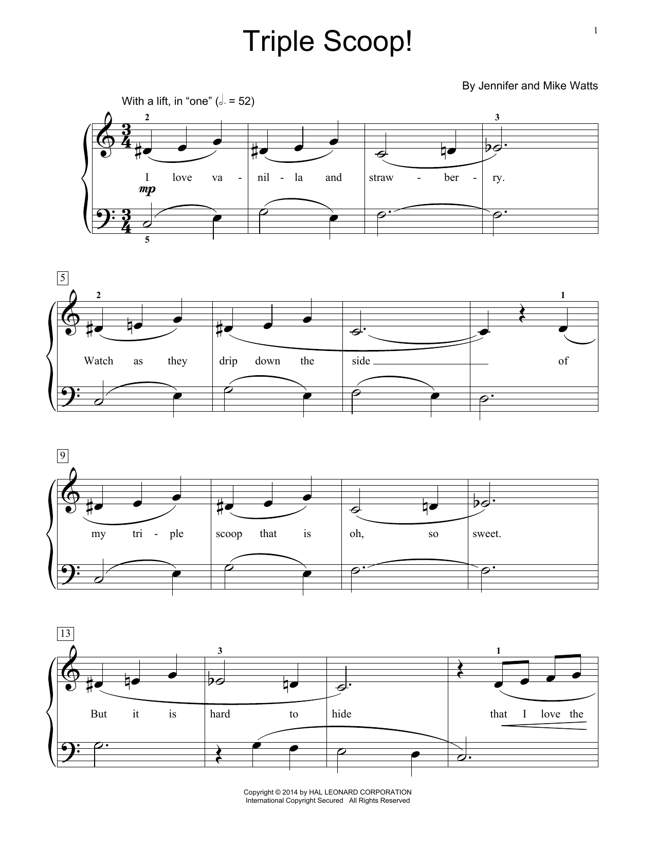Download or print Jennifer Watts Triple Scoop! sheet music, chords and digital score arranged for Educational Piano. This Instructional score includes 3 page(s).
