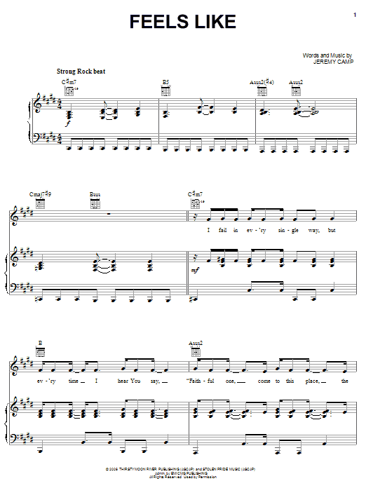 Download or print Jeremy Camp Feels Like sheet music, chords and digital score arranged for Piano, Vocal & Guitar Chords (Right-Hand Melody). This Christian score includes 7 page(s).