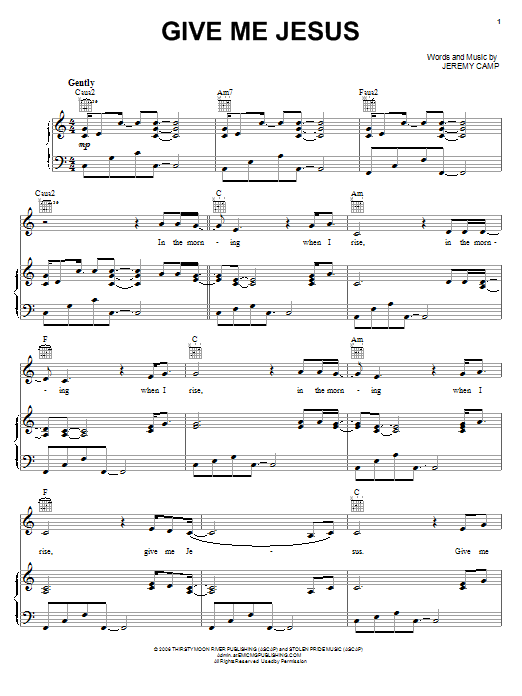 Download or print Jeremy Camp Give Me Jesus sheet music, chords and digital score arranged for Piano, Vocal & Guitar Chords (Right-Hand Melody). This Christian score includes 6 page(s).