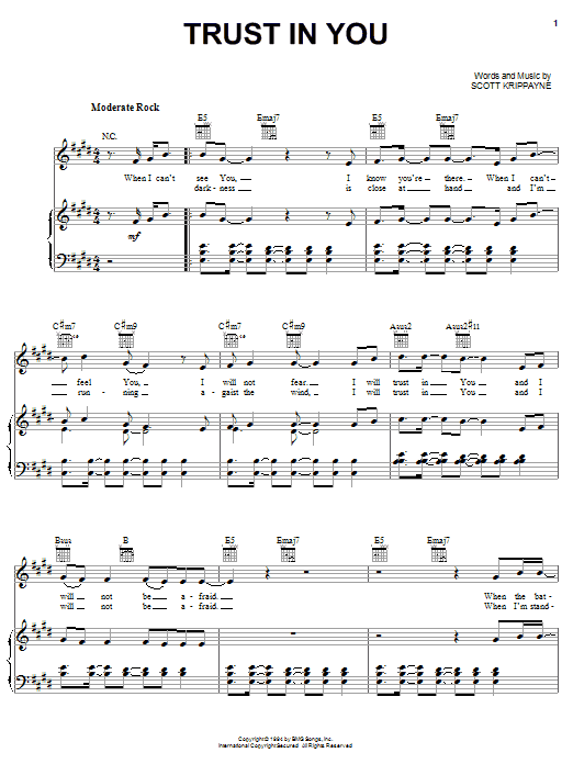 Download or print Jeremy Camp Trust In You sheet music, chords and digital score arranged for Piano, Vocal & Guitar Chords (Right-Hand Melody). This Christian score includes 6 page(s).