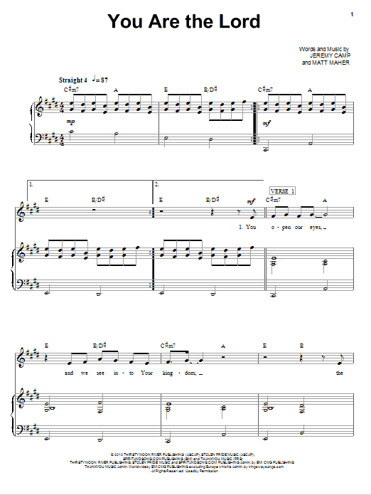Download or print Jeremy Camp You Are The Lord sheet music, chords and digital score arranged for Piano, Vocal & Guitar Chords (Right-Hand Melody). This Christian score includes 7 page(s).