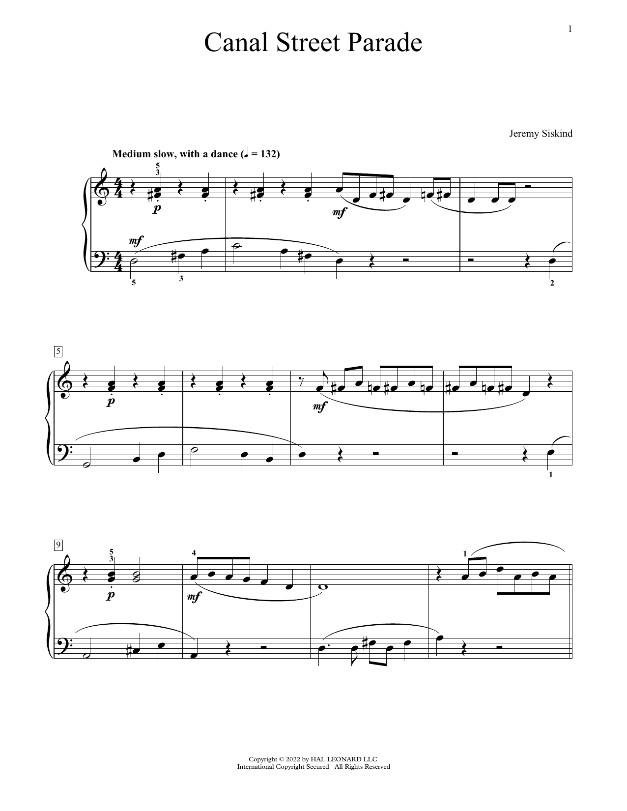 Download or print Jeremy Siskind Canal Street Parade sheet music, chords and digital score arranged for Educational Piano. This Jazz score includes 2 page(s).