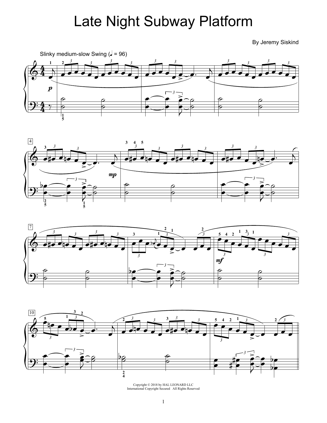 Download or print Jeremy Siskind Late Night Subway Platform sheet music, chords and digital score arranged for Educational Piano. This Instructional score includes 3 page(s).