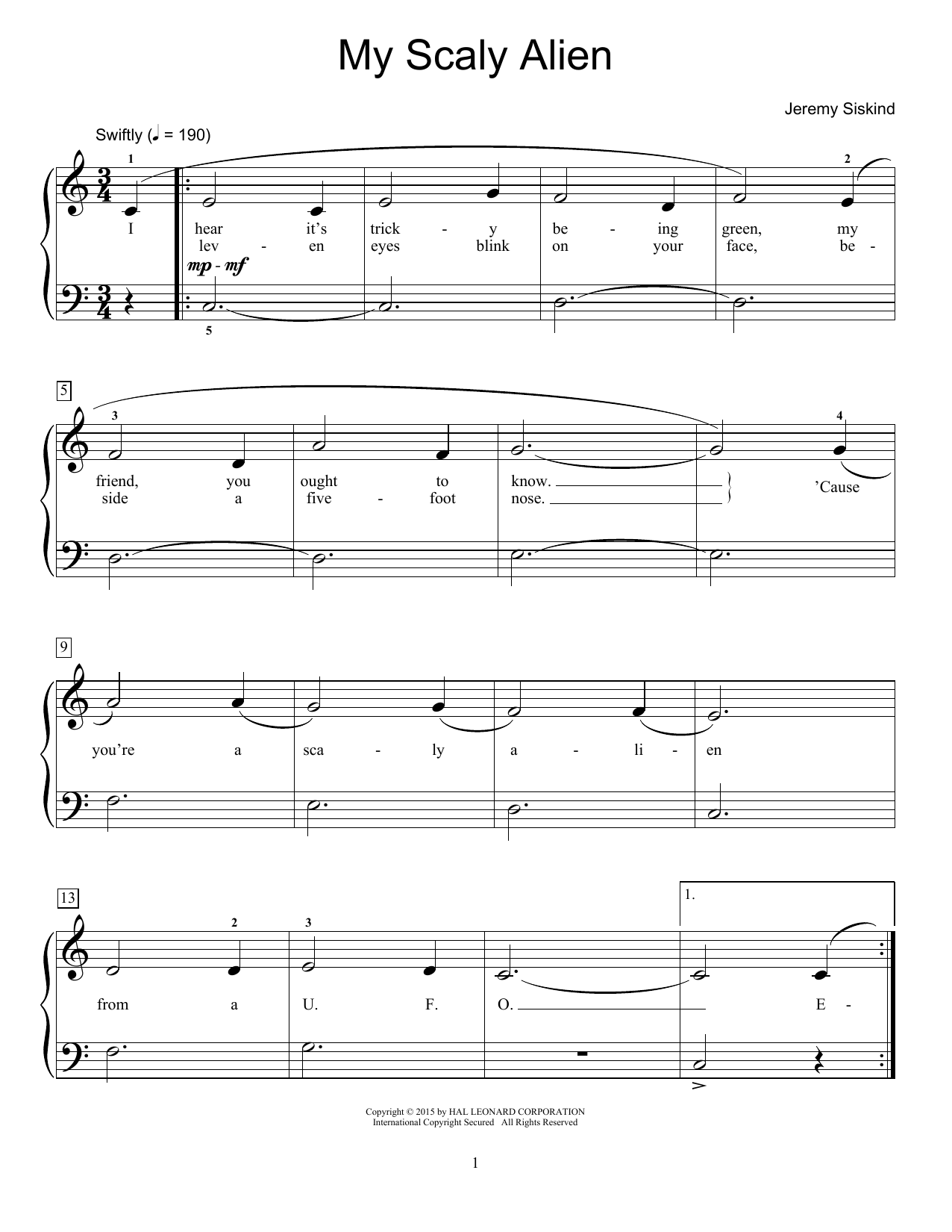 Download or print Jeremy Siskind My Scaly Alien sheet music, chords and digital score arranged for Educational Piano. This Children score includes 3 page(s).