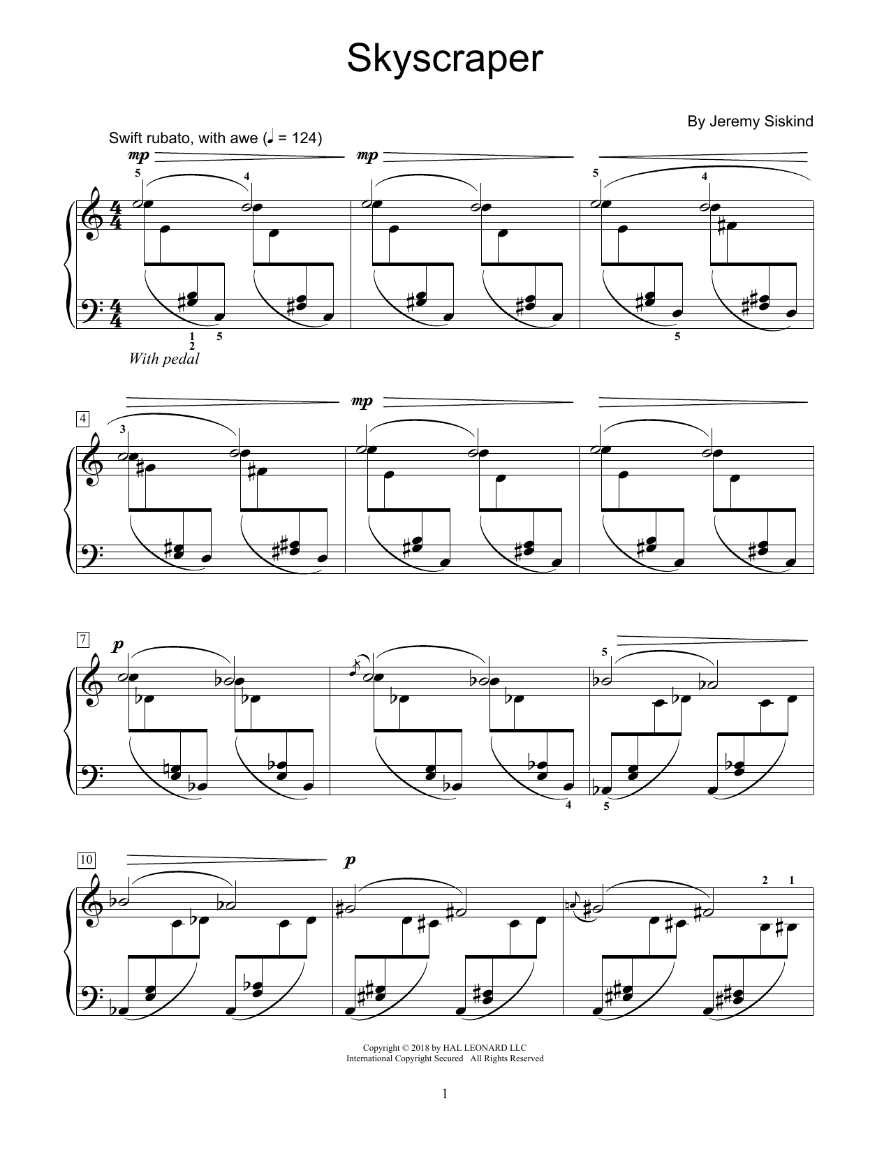 Download or print Jeremy Siskind Skyscraper sheet music, chords and digital score arranged for Educational Piano. This Instructional score includes 3 page(s).
