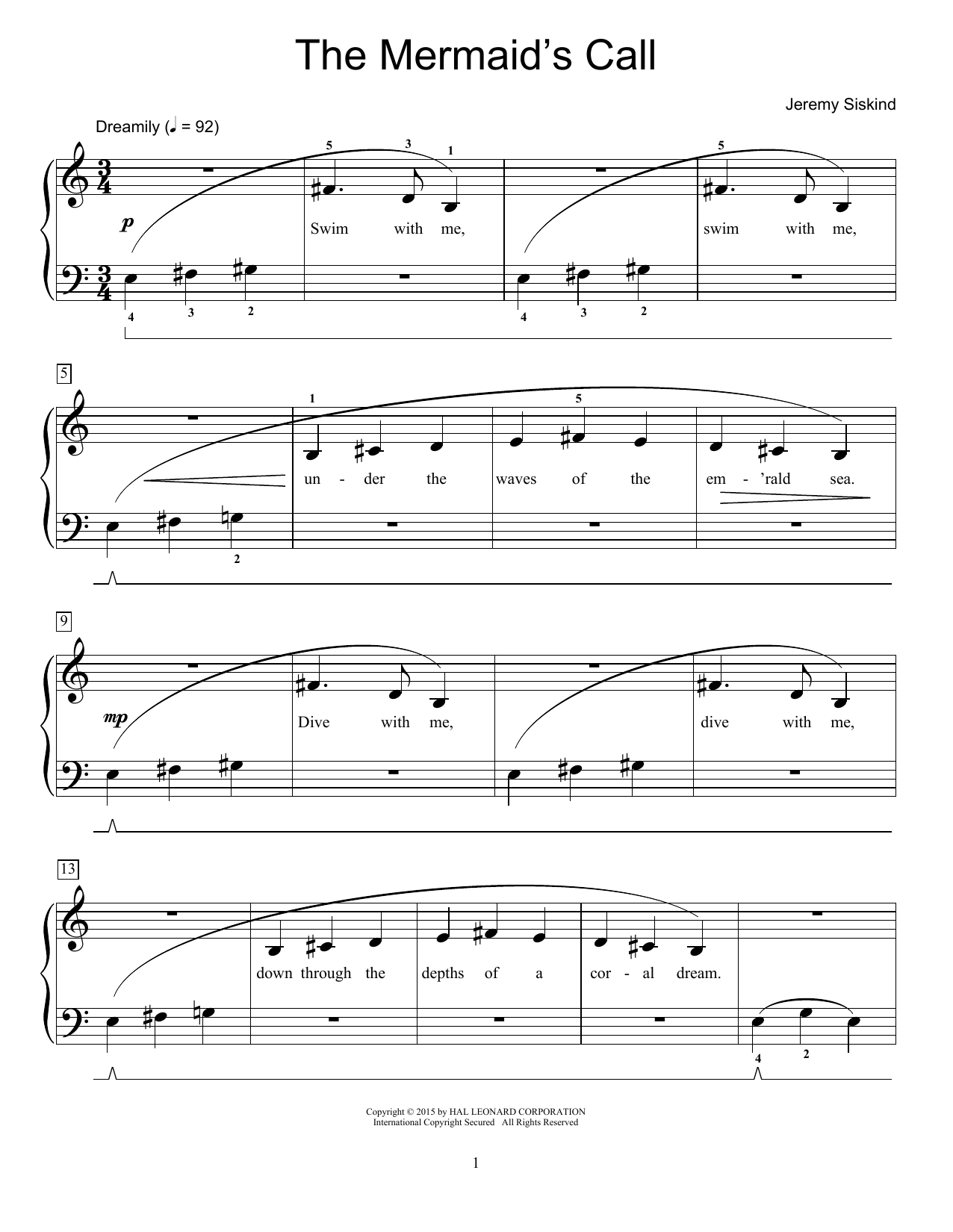 Download or print Jeremy Siskind The Mermaid's Call sheet music, chords and digital score arranged for Educational Piano. This Children score includes 2 page(s).